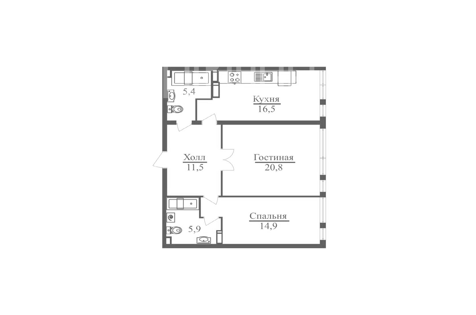 Планировка: Кухня, гостиная, спальня со своим санузлом, гостевой санузел, гардеробная.
