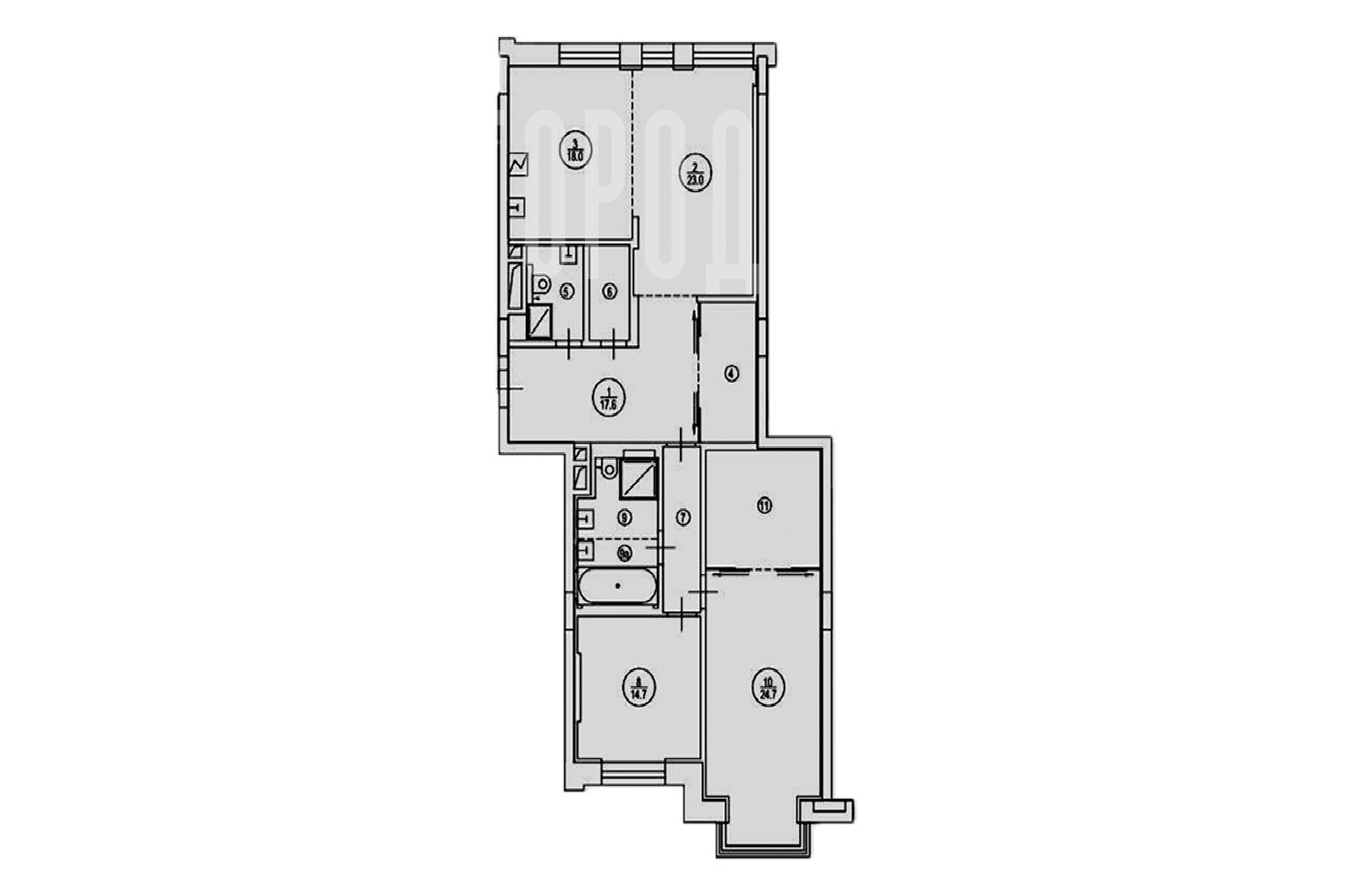 Планировка: кухня-гостиная, 2 спальни, гардеробная, 2 с/у, постирочная.