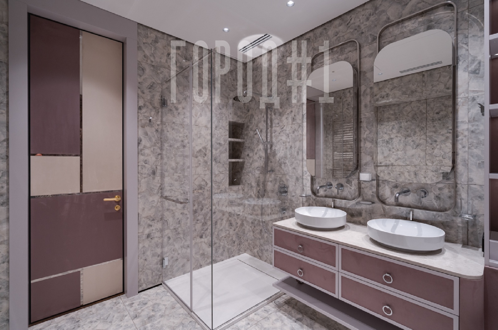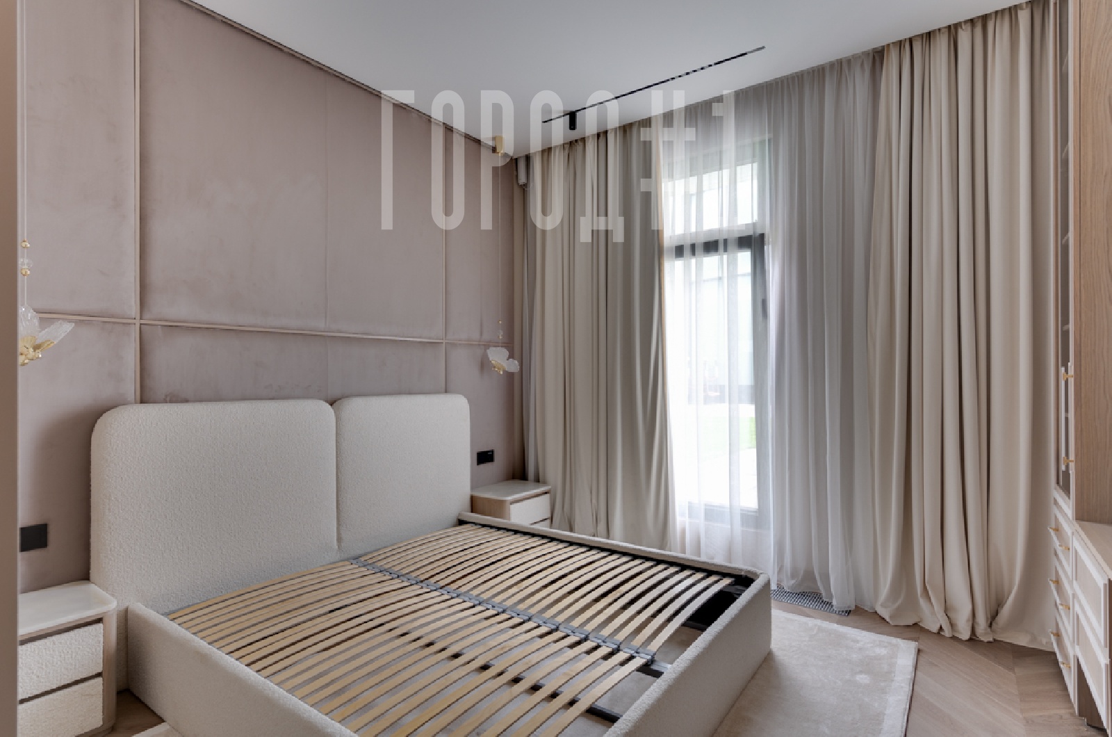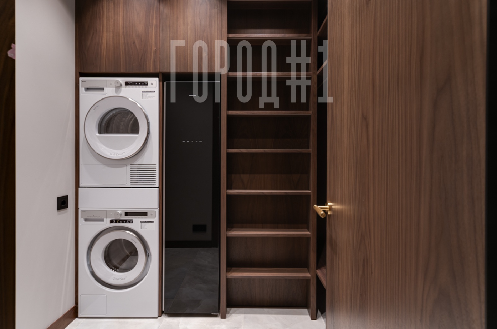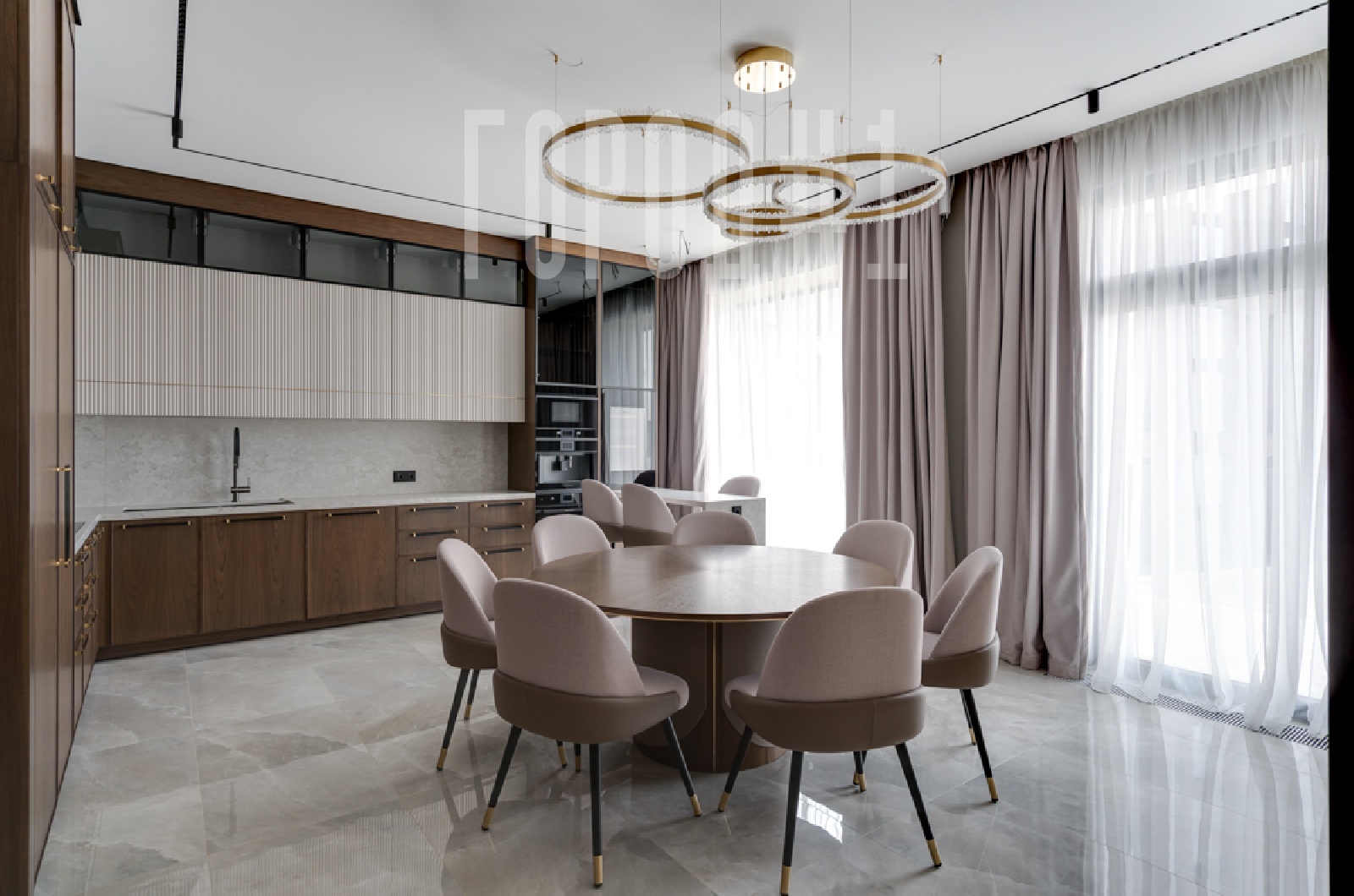 Планировка: кухня-столовая-гостиная, мастер-спальня с с/у и гардеробной, детская с с/у, спальня и кабинет, гостевой с/у, постирочная, гардеробная.