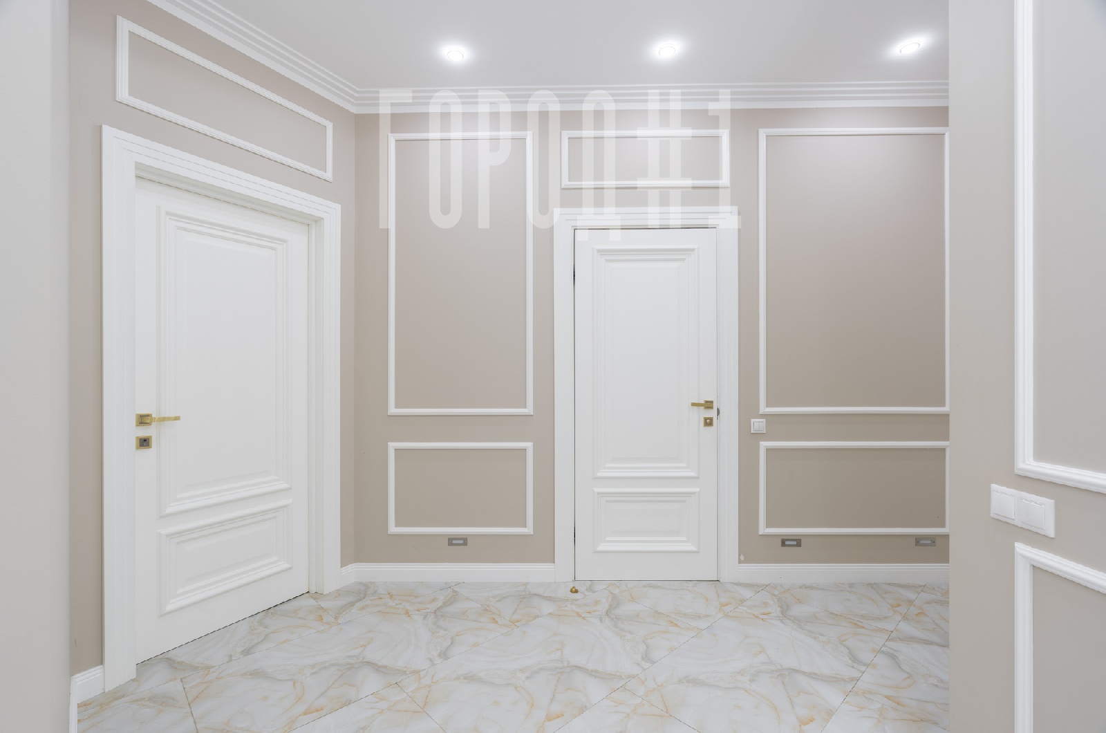 Планировка: кухня-гостиная, хозяйская спальня со своей гардеробной, две просторные детские комнаты, детский с/у, гардеробная.